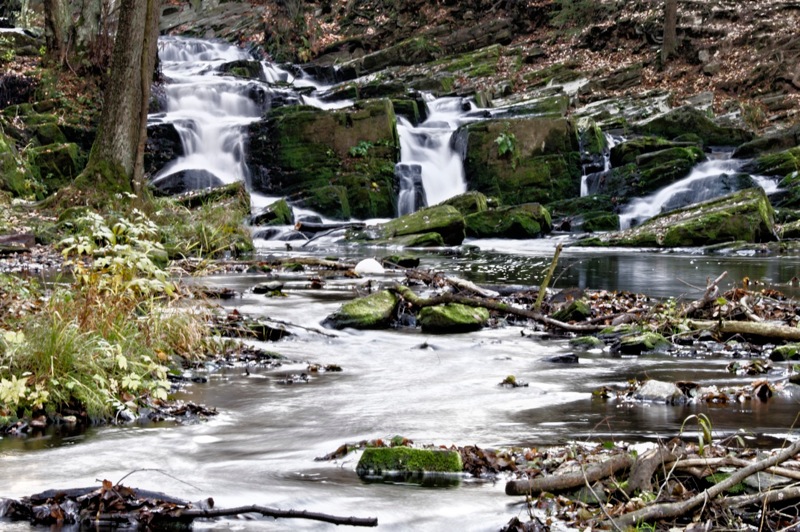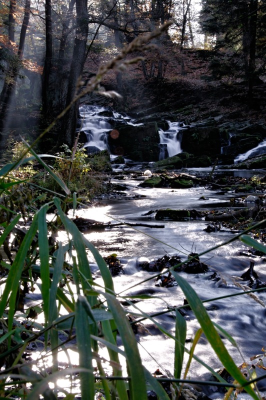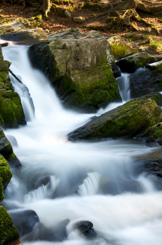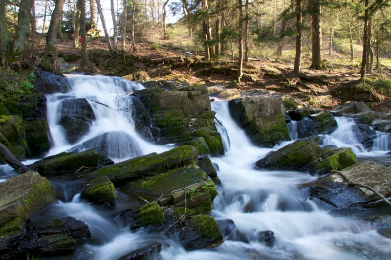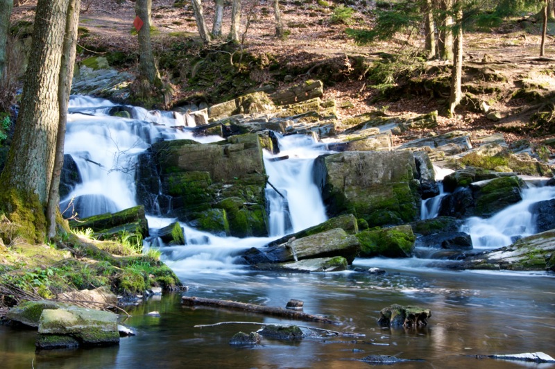 Alexisbad – Der Selkefall: Diesen nur wenige Meter über einige Gesteinsblöcke herabfallen Bach Selke als Wasserfall zu bezeichnen, ist eigentlich vermessen. Dennoch ist der Selkefall – unmittelbar an der Straße zwischen Alexisbad und Harzgerode gelegen – immer wieder sehenswert und ein schönes Fotomotiv. Dabei ist der Selkefall nicht einmal ein natürlicher Wasserfall: Er entstand in den Jahren zwischen 1828 und 1830 bei Bauarbeiten am Carls Teich, dem oberen Stauteich der Eisenhütte in Mägdesprung. – Fotos © 2011 by Birk Karsten Ecke mit NIKON D300S.