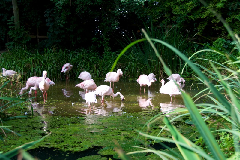 - Bild: Zwergflamingos im Zoo von Aschersleben.