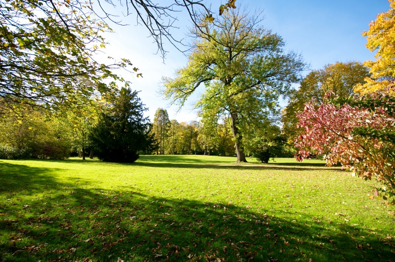 - Herbstlich gefärbte Bäume im Schlosspark zu Ballenstedt im Harz.