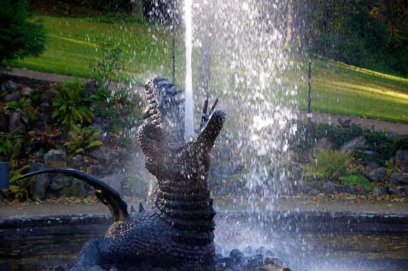 - Das Denkmal SPEIENDE UNGEHEUER LINDWURM im Schlosspark zu Ballenstedt im Harz.