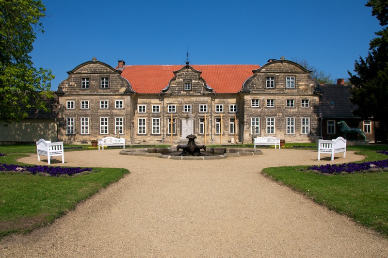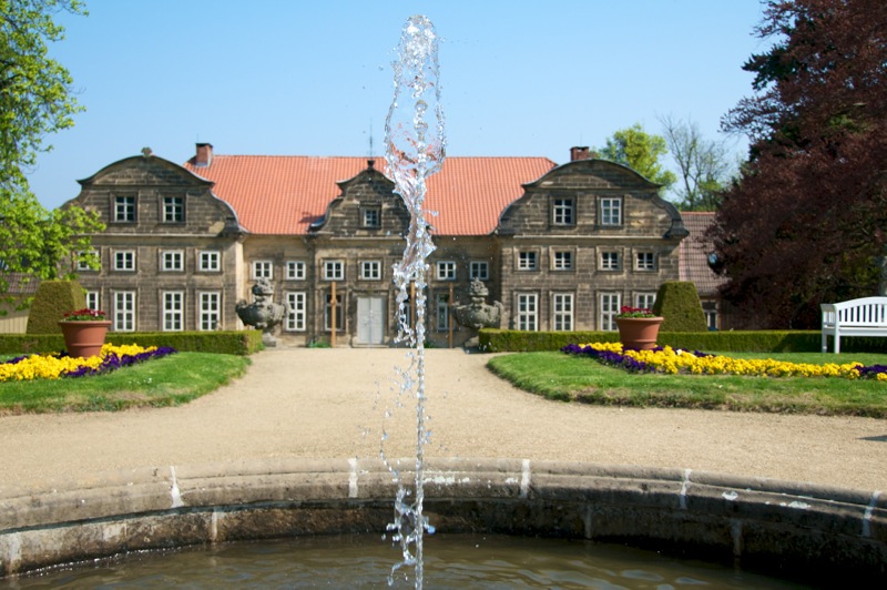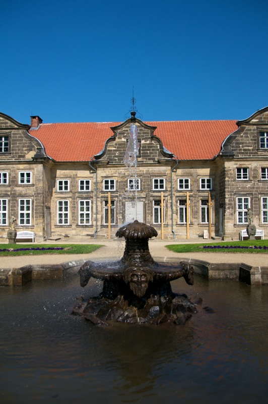 Blankenburg im Harz – Das Kleine Schloss mit dem Barockgarten: Das Kleine Schloss Blankenburg wurde im Jahre 1725 errichtet. An das Kleine Schloss grenzt ein barocker Garten mit drei erhaltenen Wasserbecken und Wasserspiel. Normalerweise ist im Kleinen Schloss ein Museum untergebracht, das aber wegen Restaurierungsarbeiten zur Zeit nicht zugänglich ist. – Fotos © 2011 by Birk Karsten Ecke mit NIKON D300S.