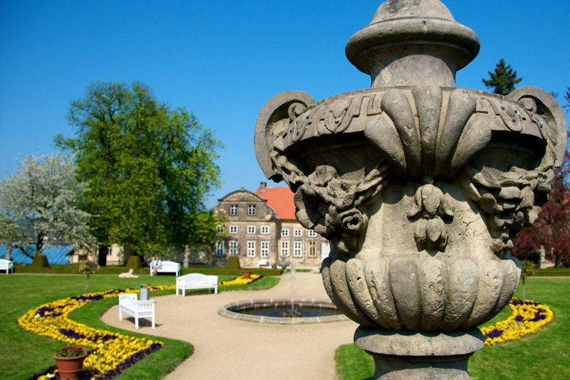 - Bild: Blick vom Barockgarten auf das Große Schloss zu Blankenburg im Harz.