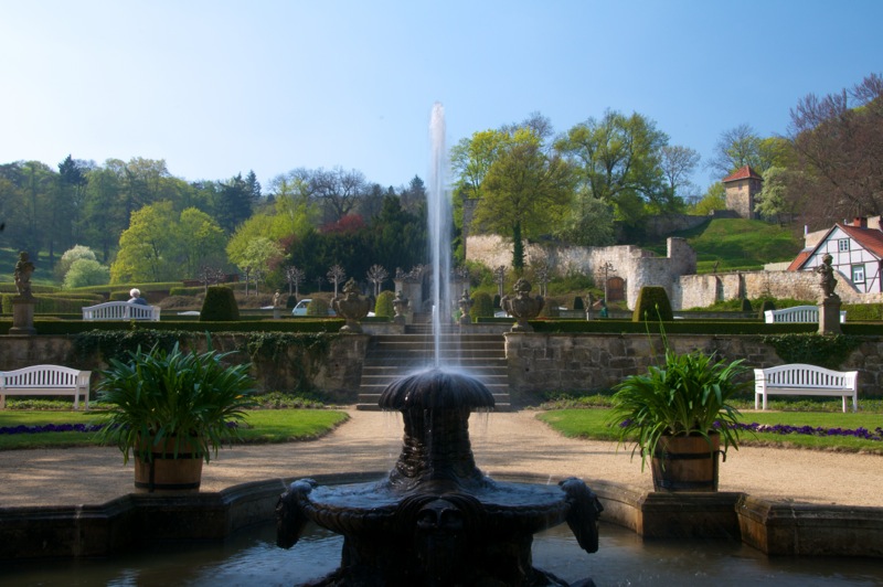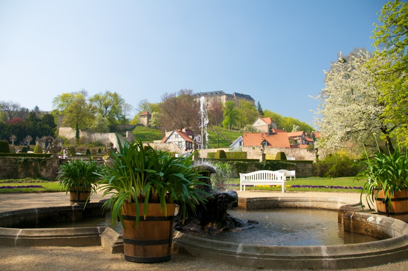 - Bild: Wasserspiel im Barockgarten des Kleinen Schlosses zu Blankenburg.