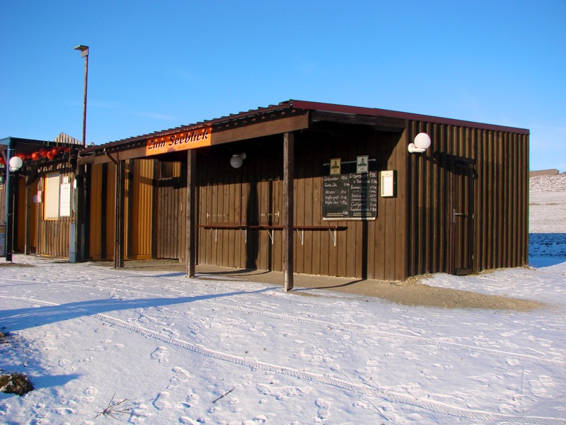 - Bild: Geschlossen wegen Kälte – Kiosk am Nordufer des Concordiasees bei Schadeleben.