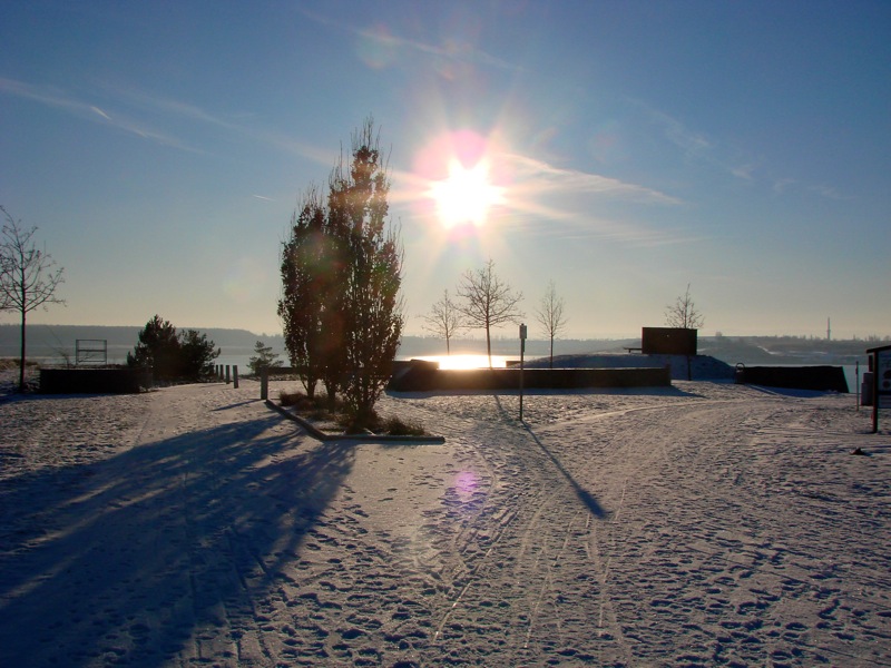 Am Concordia See im Winter: Fotoimpressionen von einem kalten Winternachmittag am Concordia-See bei Nachterstedt und Schadeleben. Die Aufnahmen entstanden am 6. Januar 2009 – etwa ein halbes Jahr vor dem folgenschweren Bergrutsch am Südufer bei Nachterstedt. Die Aussichtsplattform am Südufer existiert heute nicht mehr. Zudem besteht seit dem Erdrutsch bis heute Betretungsverbot für die gesamte Uferzone. – Fotos © 2009 by Birk Karsten Ecke & Bert Ecke mit SONY DSC-H5.