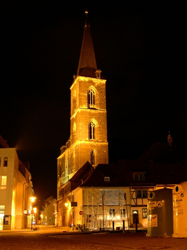 - Aschersleben – An der Marktkirche St. Stephani bei Nacht.