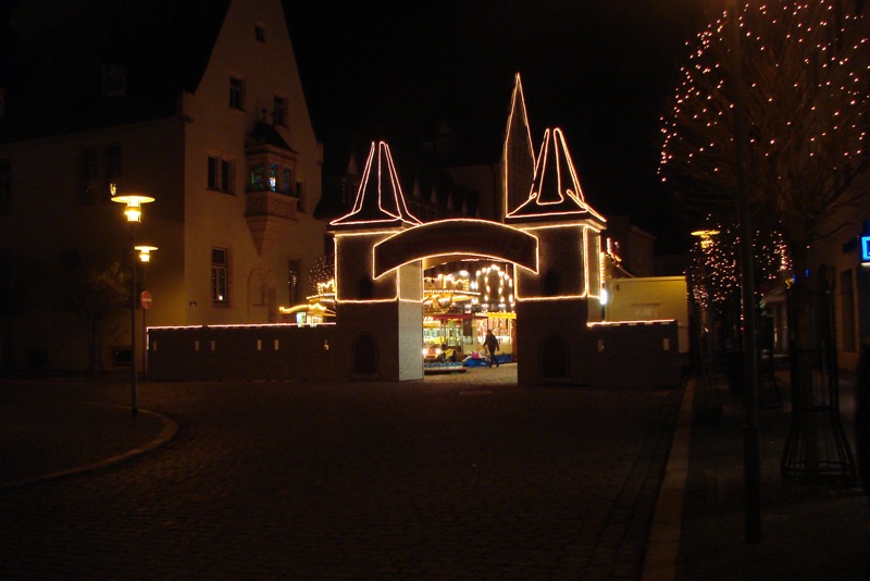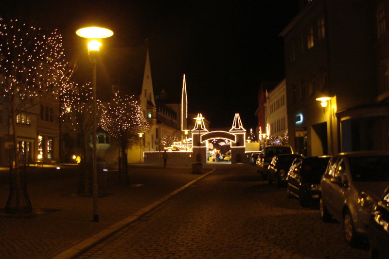 - Aschersleben – Der Weihnachtsmarkt im Jahre 2009 bei Nacht.