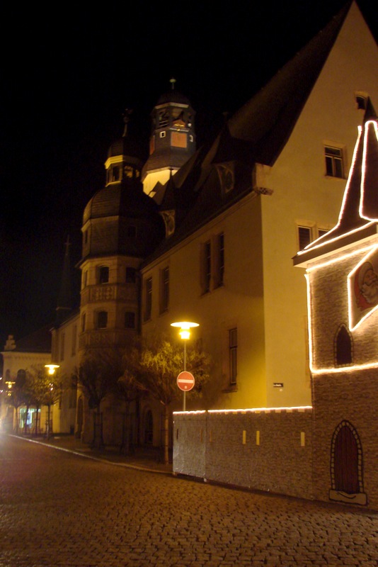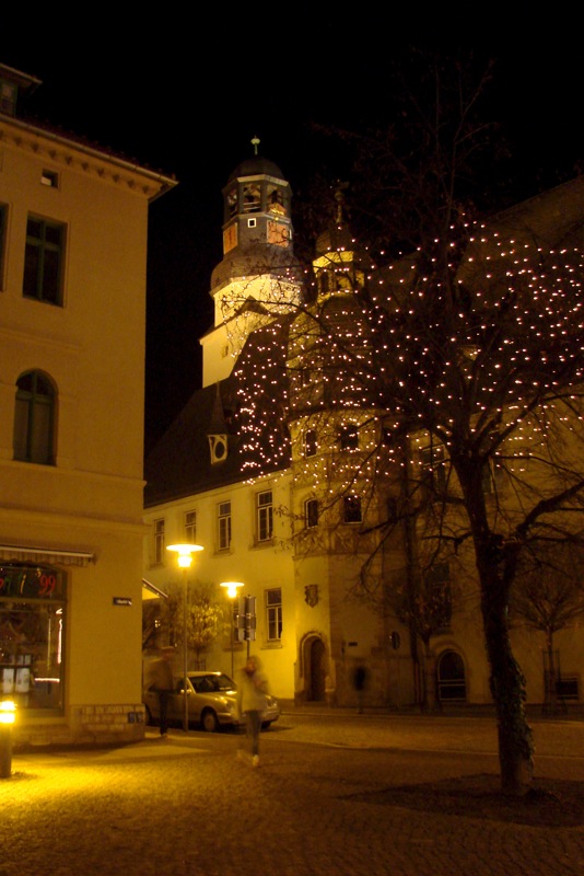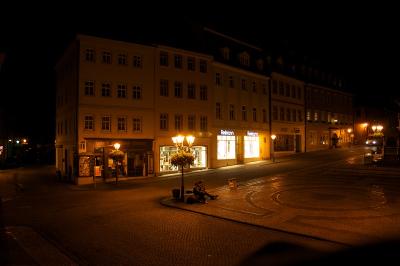 - Auf dem Markt in Eisleben bei Nacht (Werbung unkenntlich gemacht!)