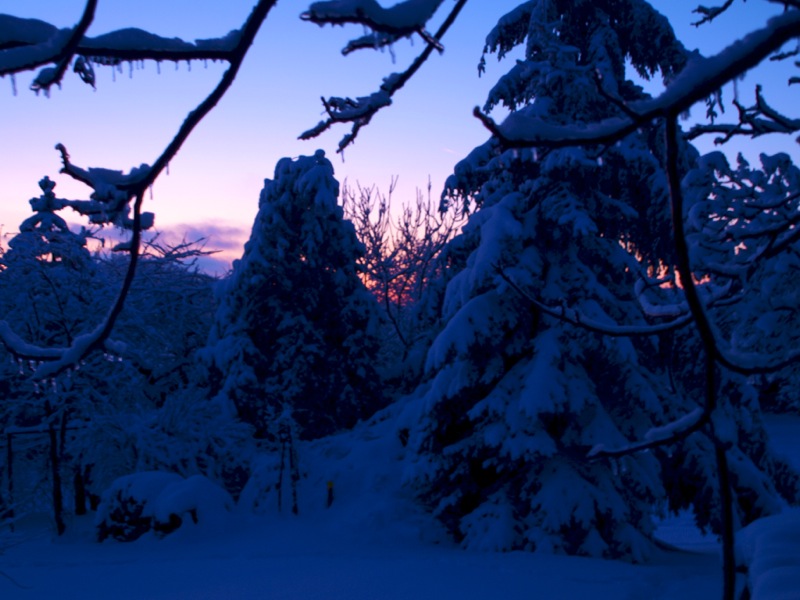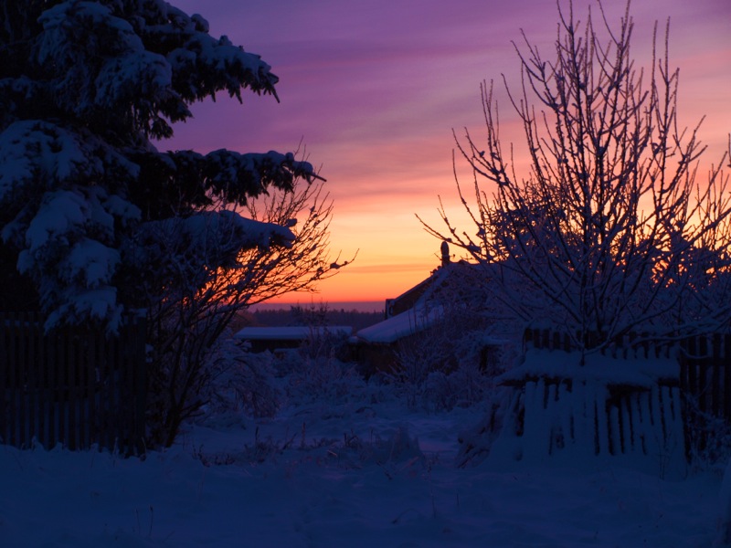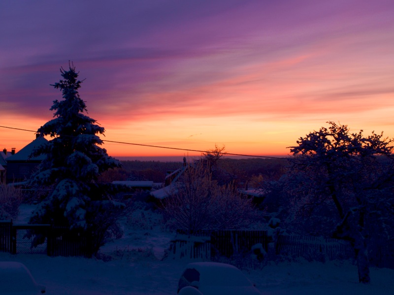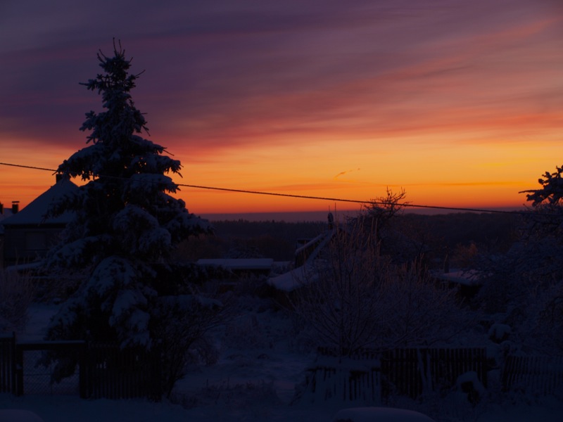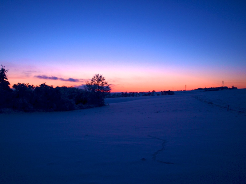- Sonnenuntergang an einem kalten Wintertag in Greifenhagen.