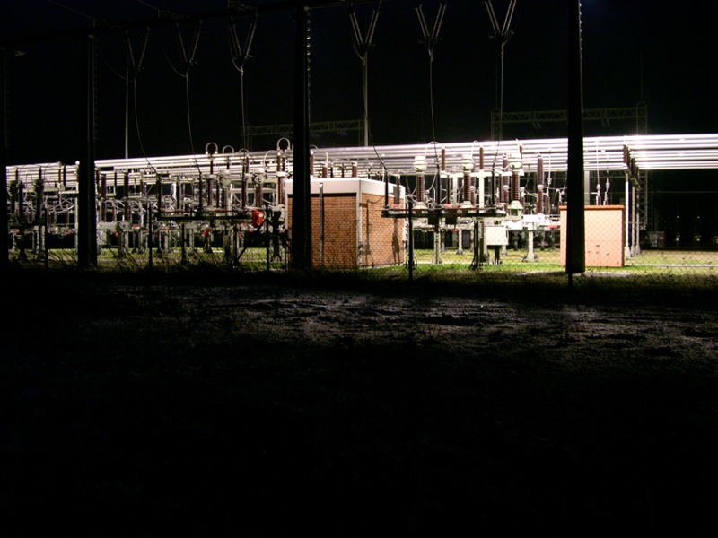 - Klostermansfeld – Das Umspannwerk bei Nacht.