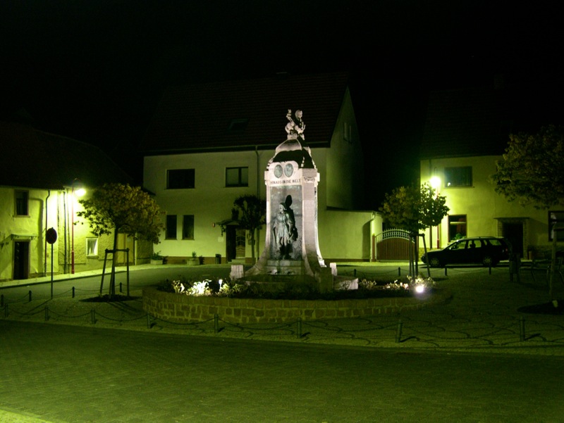 - Gerbstedt – Das Denkmal KAMERAD MARTIN bei Nacht.