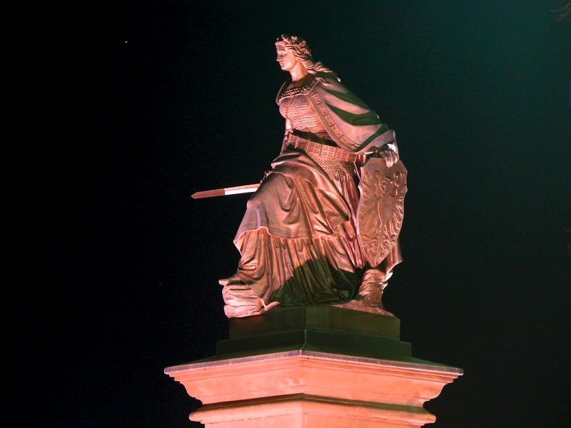 - Leimbach (Mansfeld) – Das Denkmal GERMANIA bei Nacht.