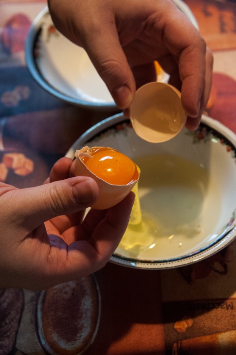 Diese Arbeitsschritte können Sie problemlos am Abend vorher vorbereiten. Die Blätterteigtaschen in diesem Fall kalt stellen. Zum Fertigstellen des Filet Wellington den Backofen auf 170 ° Grad Celsius vorheizen. Die Blätterteigrollen vorsichtig und ohne sie zu beschädigen auf ein mit Backpapier ausgelegtes Backblech legen. Zwei Eier trennen. Die Blätterteigrollen großzügig mit dem Eigelb bestreichen.