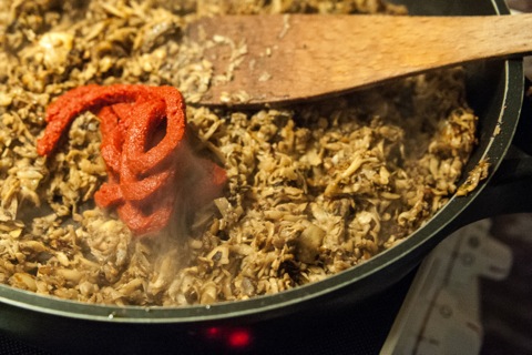 Bild: Die Champignons für die Farce zum Filet Wellington sollten die Konsistenz wie auf dem Foto haben.